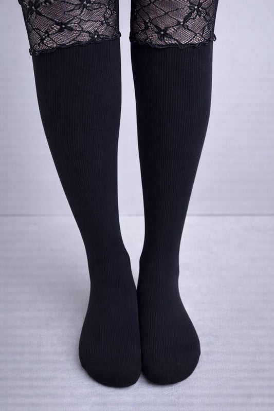Black Lace Panel Knee Socks