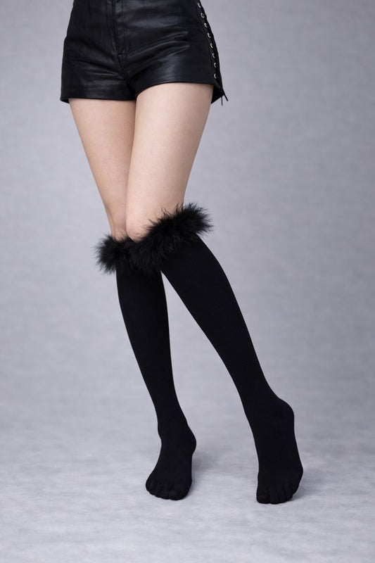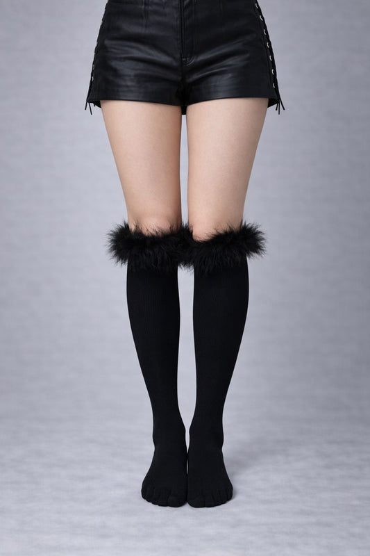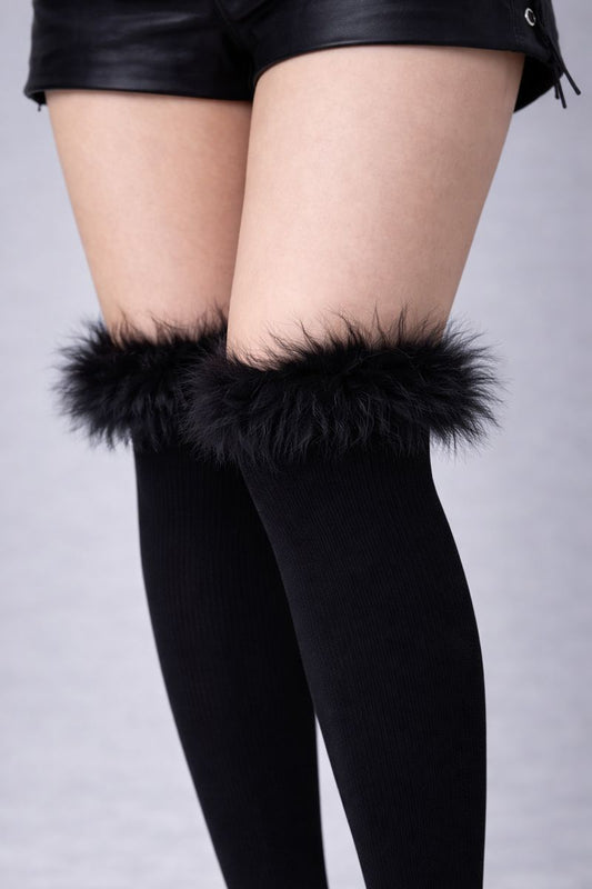 Black Feather Trim Socks