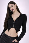 A slim-fit long sleeve top designed with a bold cut-out silhouette and a central metal zipper detail. Sharp yet minimal, this piece plays with contrast and structure to create a striking, body-hugging look.