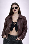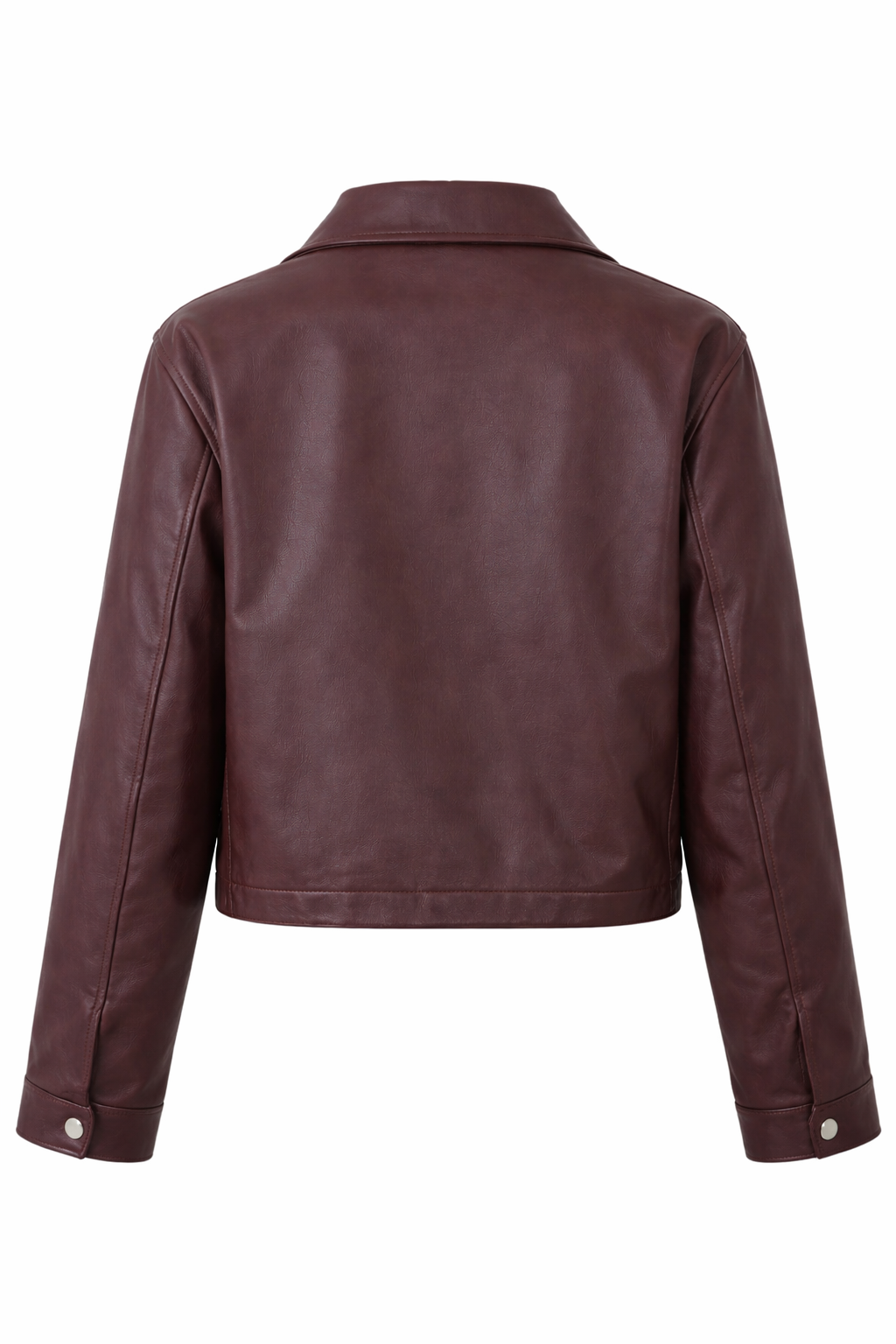 The rich oxblood brown tone adds depth and character, sitting between dark brown and burgundy for a warm, elevated finish. Crafted from smooth PU leather, this jacket is lightweight yet structured, making it ideal for transitional seasons and layered everyday looks.