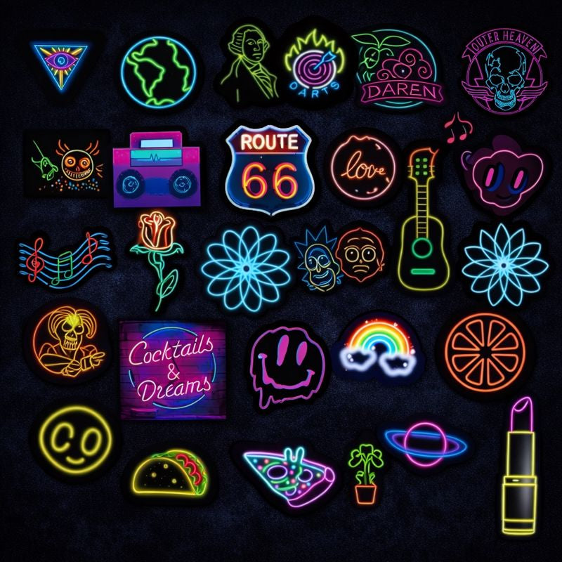 Bright after dark. Loud without sound. This neon graffiti sticker pack is made to light up everyday objects with night energy — bold symbols, electric colors, and underground visuals that feel alive after sunset. Designed for expression, rebellion, and playful defiance, these stickers turn anything ordinary into a personal statement.