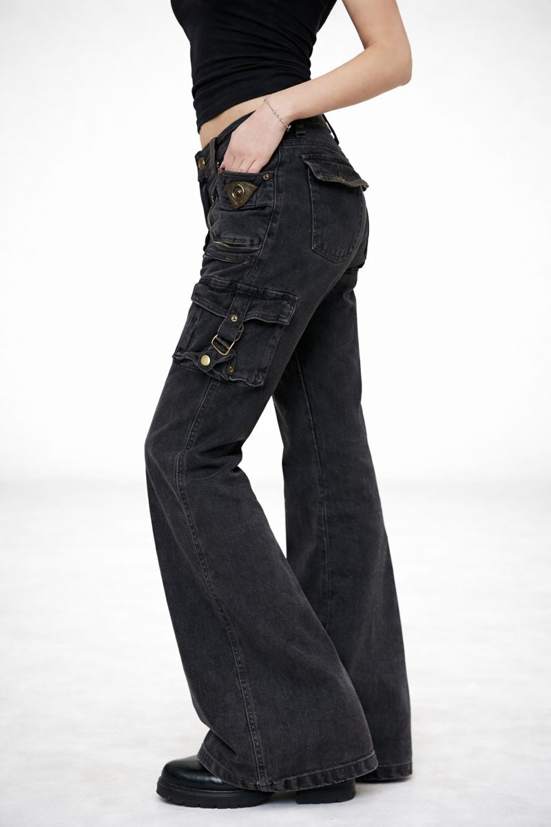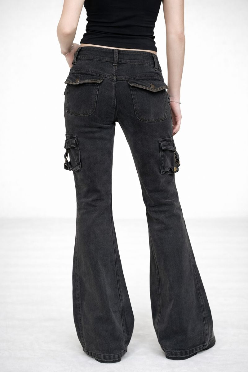 Washed Multi-Pocket Flared Denim Jeans
